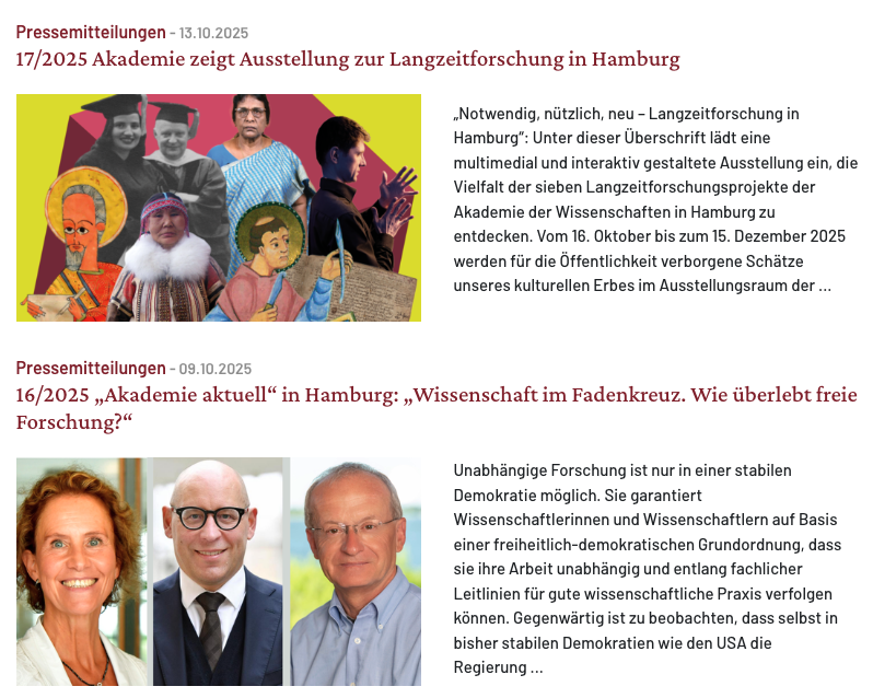 230 Mitglieder, Tausende Publikationen, Jahrzehnte an Archiven – und jedes Mitglied möchte optimal gefunden werden. Die Akademie der Wissenschaften Hamburg vereint seit 20 Jahren herausragende Forscherpersönlichkeiten, deren Arbeit auch digital sichtbar sein soll. Die zentrale Herausforderung: eine komplexe Datenstruktur mit unterschiedlichen Mitgliederkategorien (Ordentliche, Ehrenmitglieder), Arbeitsgruppen-Zuordnungen, bibliothekarischer Verschlagwortung von Publikationen und einem geschlossenen Mitgliederbereich – plus eine Suchfunktion, die "wie Google" funktioniert.