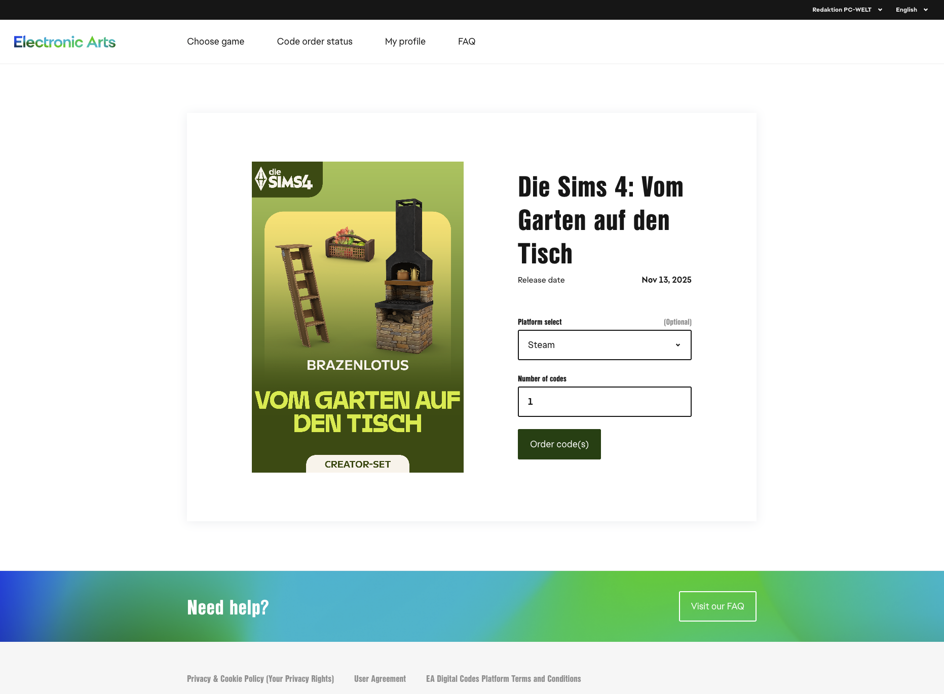 - Influencer, Content-Creatoren und Journalisten, die eine Rezension einreichen müssen – zum Beispiel ein YouTube-Video, einen Podcast oder einen Artikel. Mit dem Nachweis wird der nächste Code freigeschaltet. Administratoren von EA prüfen die Nachweise, sichten Verfügbarkeiten und entscheiden über neue Nutzer.